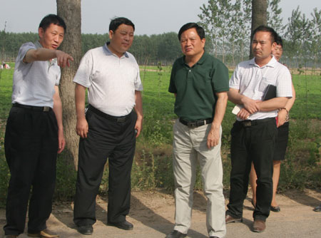 魏培林(左三)深入田间地头查看惠农政策落实情况 李文森 摄