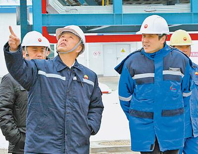 孙波(前左)在中亚天然气管道哈萨克斯坦段6号站考察 新华社发