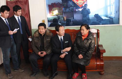 李天福(右二)在党的群众路线教育实践活动中深入群众,广泛征求群众意见