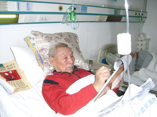 现在,刘献爵的身体每况愈下。平煤神马医疗集团总医院护士长孟隽说,近1个月来,刘献爵老人已经出现三四次心脏衰竭,均被一次次从死亡线上拉了回来。但是,刘献爵老人并没有停止追求,又着手开始写第10篇文章。