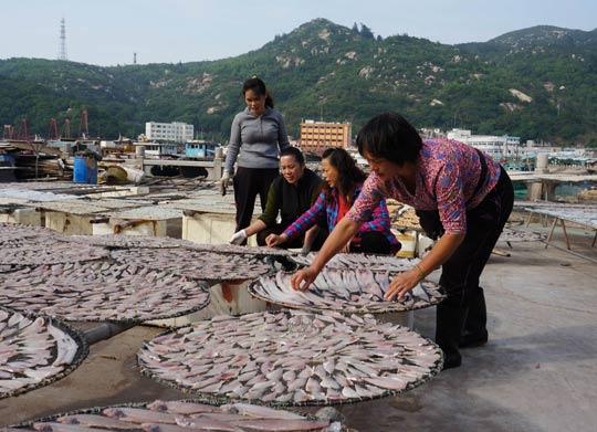 在殷金好的带领下,万山村建起了集加工海鲜、晒制海鲜、包装海鲜、销售为一体的大型晒制海鲜加工厂,打出了深海绿色食品——万山“芳姨”生晒海味的招牌并推向市场。不仅如此,她还带动村民搞休闲渔业、海钓、渔家乐等第三产业,吸引了众多游客,带动村民收入“节节高”。