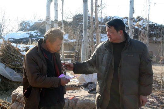 石书江(右)慰问贫困职工