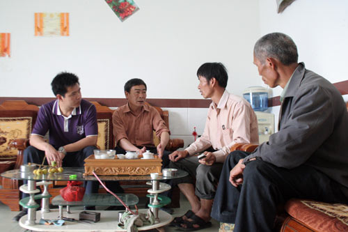 图为2010年,陈其伟(左二)在村民家中听取村发展建议。