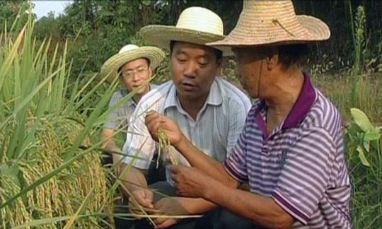 图为张永灵(中)在正大村了解粮食生产情况