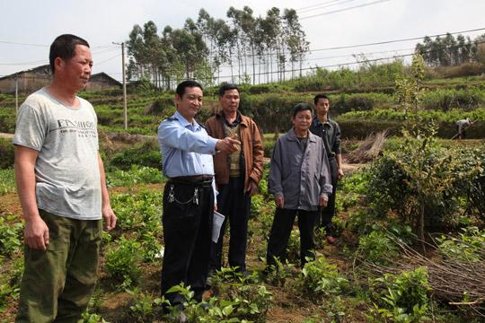 莫运福(左二)实地调解纠纷。(资料图片)