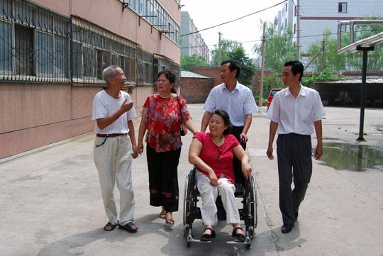 王挺军(右二)和社区工作人员看望帮扶对象杨香香。(资料图片)