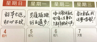 写在日历上的“韶华已逝,初心不改”,张纪淮为自己加油。