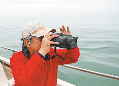 潘文石观察白海豚活动。新华社记者 陆波岸摄