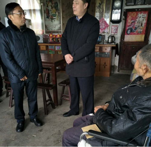 大丰区副区长、公安局长沈阳(中)在白驹镇党委书记王志建(左一)的陪同下到朱舍村看望周某