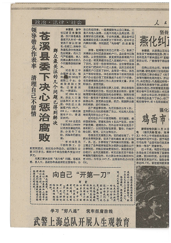 人民日报曾以《苍溪县委下决心惩治腐败》和《向自己“开第一刀”》为题,报道苍溪县委抓党风廉政建设的成效。