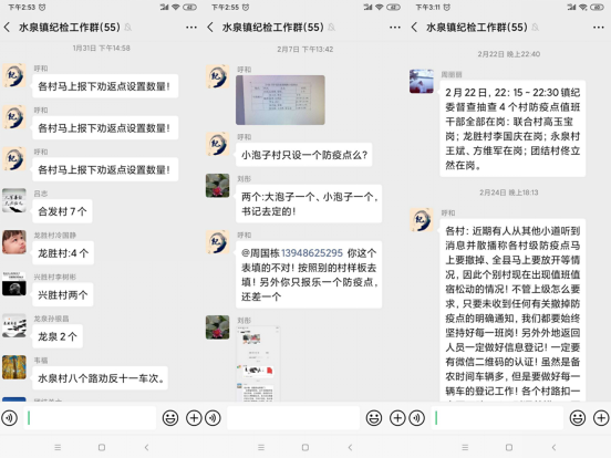 执纪监督,护航防疫取胜利。“每个村有几个路口,进出情况登记如何?社会捐赠物资是多少,是否发放和公示?企业复工手续完善吗?”呼和每天都要做到心中有数,他紧盯疫情防控的重点领域和关键环节,坚持疫情防控工作推进到哪里,监督检查就跟进到哪里。呼和带领水泉镇纪委人员对超市、药店、加油站等重点行业疫情防控及镇复工企业手续审批等情况进行检查,24小时不定时对各村防疫点值守人员、包村干部到岗到位情况进行督查,加大督查、追责、问责力度。截至目前,水泉镇纪委累计开展监督检查38次,电话调度22次,诫勉谈话3人、约谈4人、通报批评3人,为打赢疫情防控阻击战提供了强有力的纪律保证。
