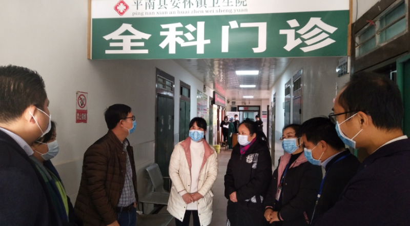 吴秋月(右五)在安怀镇卫生院检查疫情防控工作