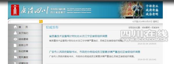 四川广安市政府副秘书长汪智勇涉严重违纪被调查
