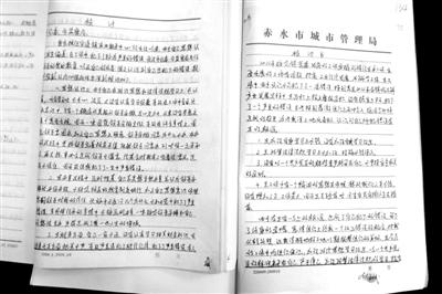 图为谢学斌两次违纪写的检讨书。赤纪 摄