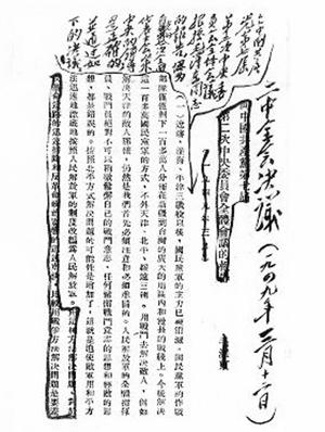 图为1949 年3 月12 日毛泽东修改的中共七届二中全会决议(节录)