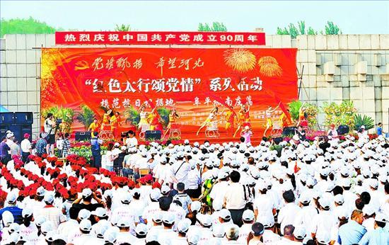 据了解,为庆祝建党90周年,保定太行山沿线各地群众,以“红色太行颂党情”系列活动为平台,以“红色名城·英雄保定”为主题,启动开展了“红色文化年”活动,红色文化展演、红色摄影图片展、红色电影展映、红色文化讲座、红色诗歌创作等系列庆祝活动。(记者 别志雷)