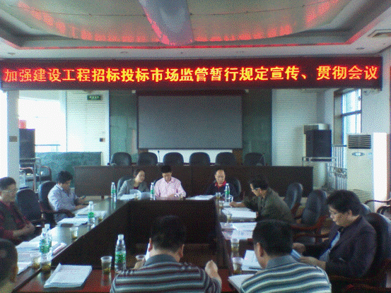 2012年5月16日上午,县监察局牵头,召集县发改局、县住房和城乡建设局、财政局、审计局、县建设工程招标办等相关监管部门工作人员以及县内各建筑工程公司和招标代理公司法人代表在县住房和城乡建设局六楼会议室就我县新出台的《暂行规定》进行了认真学习和热烈讨论。
