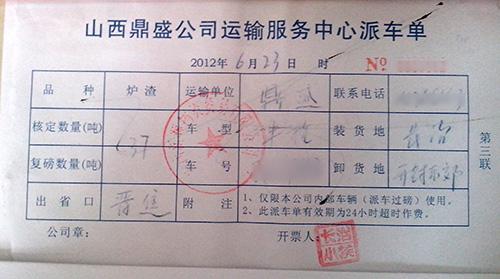 2009年,开始进行这项运输业务的时候,他们特地咨询这儿的工作人员,得到的答复是,晋城市范围内的炉渣需要到当地炉料公司办理有关手续,其他地区的炉渣只要有高速收费票据和出货单位的证明即可通行。