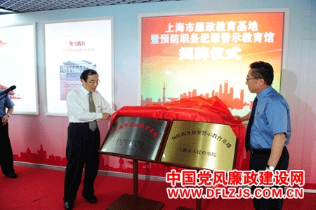 上海市纪委书记为“廉政教育基地暨预防职务犯罪警示教育基地”揭牌