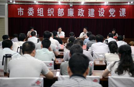 河南省安阳市委常委、组织部部长彭治安为市委组织部机关全体干部上党风廉政建设党课