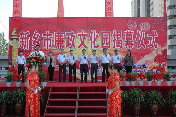 9月28日,新乡市领导王炳奇、贾全明为位于和平大道南段的市廉政文化园揭幕。
