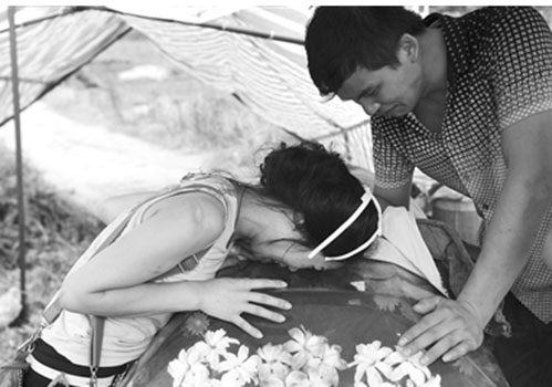 昨日下午,邓正加的女儿和儿子趴在父亲棺材上大哭。周清树 摄