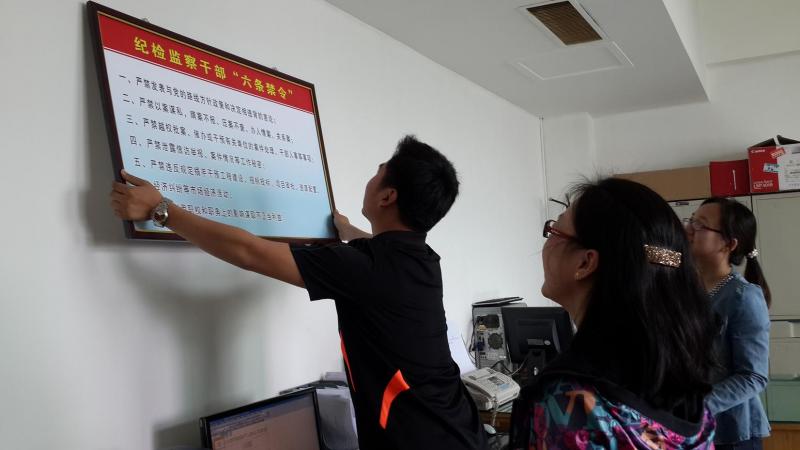近日,山西省芮城县纪委每个办公室的醒目位置都悬挂了印有“纪检监察干部‘六条禁令’”、“纪检监察干部‘十不准’”等内容的警示牌,督促纪检干部每日对照警示牌自省、自警、自律,切实做到正人先正己,用铁的纪律打造一支忠诚可靠、服务人民、刚正不阿、秉公执纪的纪检监察干部队伍。(山西省纪委)