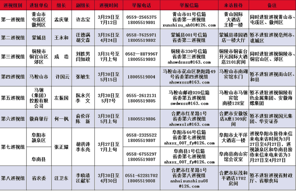 安徽:公布今年上半年巡视单位和电话邮箱