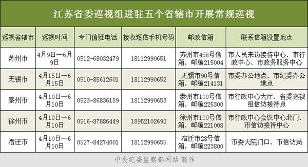 江苏:将巡视苏州等5市 公布值班电话邮箱