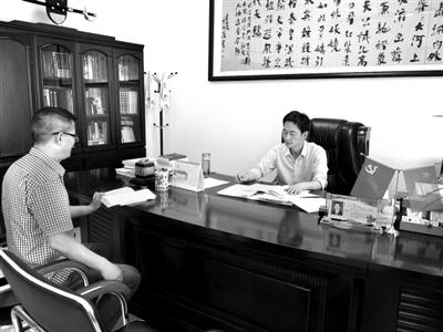 6月4日,贵州省江口县委书记袁刚(右)就主体责任落实情况约谈该县双江街道党工委书记。匡世富 摄