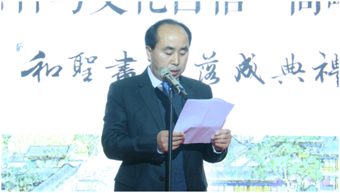 仪式由中国诗歌春晚组委会副主任于洪英主持。广平县委书记董鸣镝致欢迎词。董鸣镝书记在致辞中指出,追寻书香文旅广平,和圣书院的开办,为广平二次工业经济腾飞搭建了良好的文化氛围。柳献军作为和圣后裔、柳下传人,其投资兴建和圣书院,就在于继承和发扬“和”文化,传承发展中华优秀传统文化,并以此实现改变人们观念,筑牢道德根基,提高人生格局的目标,为回报家乡、构建和谐社会贡献力量。