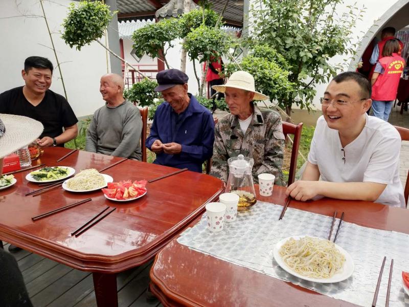 当天,河北省爱心互助协会名誉会长郭朋勃发表讲话:“心系家乡的侯泽军在2017年斥资一千万带领村民成立了黄北坪农宅旅游合作社。在一次偶然的活动中,为了把爱心传递给更多的人,我与侯泽军一拍即合,在合作社的基础上成立了黄北坪爱心食堂,为村里的孤寡老人长期提供爱心餐,我希望在座的爱心人士能够继续奉献自己的爱心,使老人们老有所养,老有所依”。