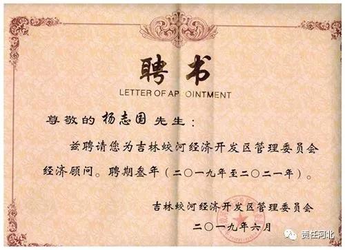 河北省企业社会责任促进会杨志国会长受聘吉林蛟河开发区经济顾问