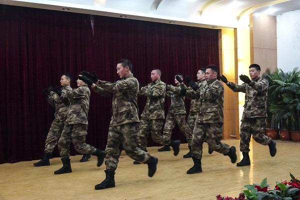 警卫连张东、樊德才等表演军体拳《练为战》,动作整齐、刚健有力,虎虎生风、锐不可挡。