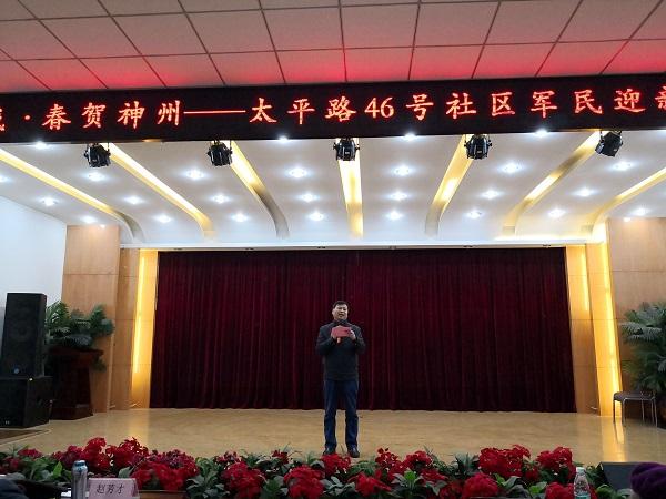 清廉网讯(王志业)犬伴旧岁含笑去,猪随新春载舞来。在这年终岁首、辞旧迎新之际,万寿路街道太平路46号社区于1月22日在活动中心举办“福满京华·春贺神州——太平路46号社区军民迎新春联欢会”,百余名文体活动积极分子先后登台献艺,200余名社区居民观看了演出。海淀区万寿路街道办事处吴生平、随奋强、梁涛和驻社区有关单位的领导出席了联欢活动。