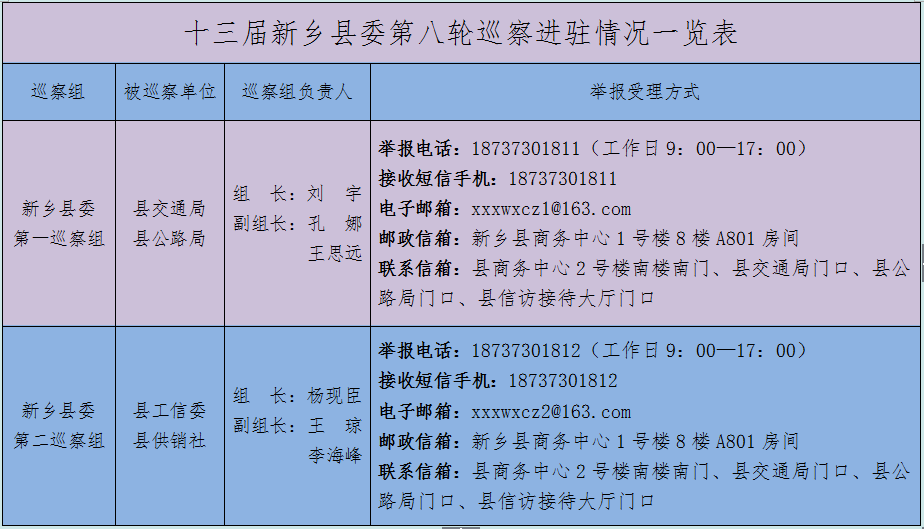 11月2日至12月21日,河南省新乡县委巡察组,对县交通局、县公路局、县工信委、县供销社等4家单位党组织开展常规巡察。...