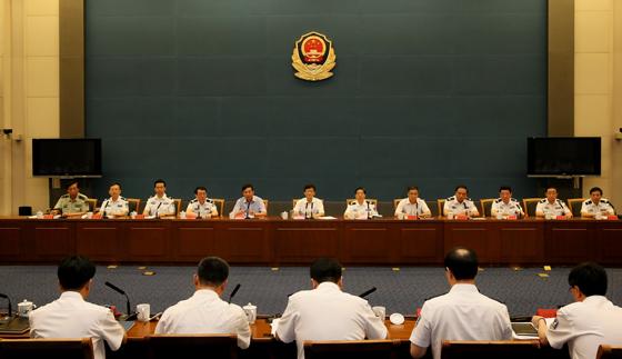 7月31日,中共中央政治局委员、中央政法委书记孟建柱,国务委员、中央政法委副书记、公安部部长郭声琨在北京与新任交流任职的公安厅局长进行集体谈话。