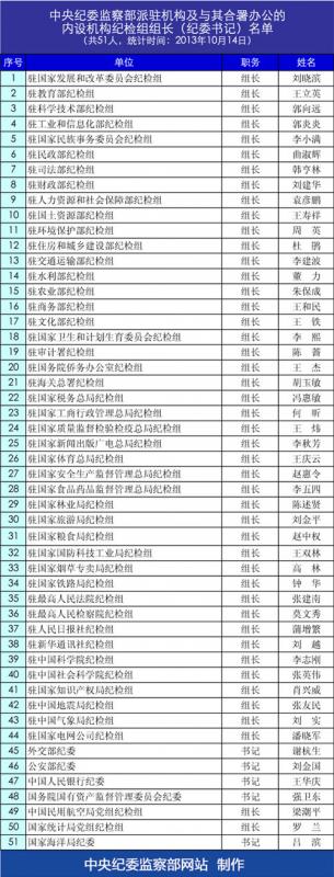 中央纪委监察部发布51位派驻机构纪检组组长名单