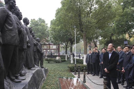 中共中央政治局常委、中央纪委书记王岐山22日下午在湖北省武汉市调研期间,专程来到中央监察委员会旧址,瞻仰第一届中央监委10名成员雕像并敬献花篮,深切缅怀革命先辈。
