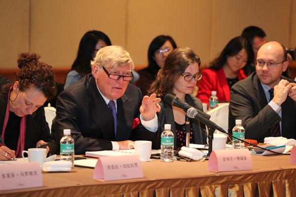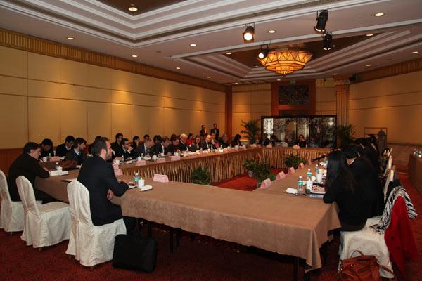 考察团成员与WT0上海研究中心副秘书长邱一川座谈上海自贸区建设情况
