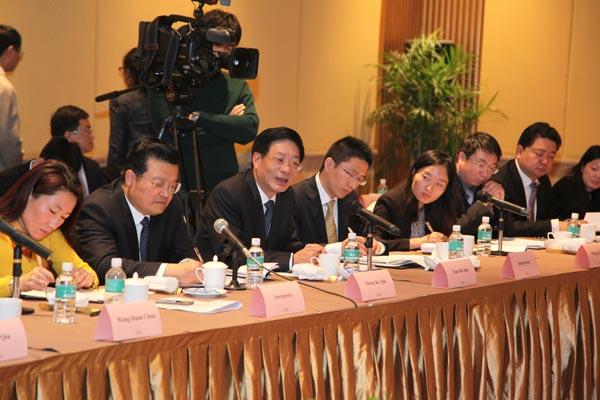 考察团成员与江苏省纪委、省委组织部新闻发言人座谈