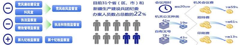 收拢五指攥成拳,理清职责抓主业。中央纪委监察部对内设机构进行整合优化,机构设置、人员配置进一步向办案和监督工作倾斜;对参与的125个议事协调机构进行调整,取消或不再参与各类议事协调机构111个。创新方式方法,增强监督实效。各级纪检监察机关把查办案件作为最基础、最根本的职责,坚持“老虎”“苍蝇”一起打。正人先正己,把自己摆进去。在改进作风过程中,中央纪委监察部始终把自己摆进去,委部机关会议费下降59%,招待费下降61%,印刷费下降13%;开展会员卡专项清退活动,81万名专、兼职纪检监察干部全部递交了零持有报告书。——详细