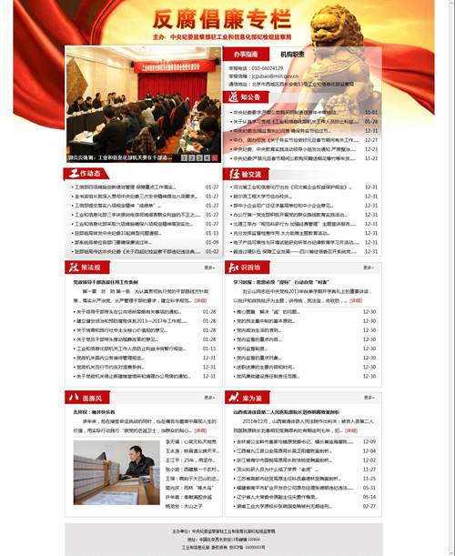 专题网页设置了“通知公告”、“工作动态”、“经验交流”、“政策法规”等栏目,发布党中央、国务院及工业和信息化部反腐倡廉工作的新要求、新举措,全面展示贯彻落实反腐倡廉重大决策部署情况以及履行纪检监察职责的重要活动,及时宣传规范党员干部行为、纪检监察工作相关政策法规,总结提炼党员干部应知应会的反腐倡廉知识,树立清廉典型、介绍廉洁自律先进人物事迹,剖析贪污腐败典型案例、警钟长鸣。此外,特别开辟“办事指南”栏目,公布举报电话和邮箱,明确举报受理范围,疏通举报渠道。