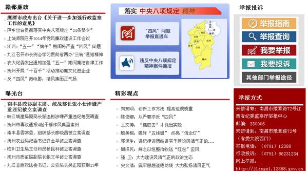江西省纪委网站开通“四风”问题举报直通车