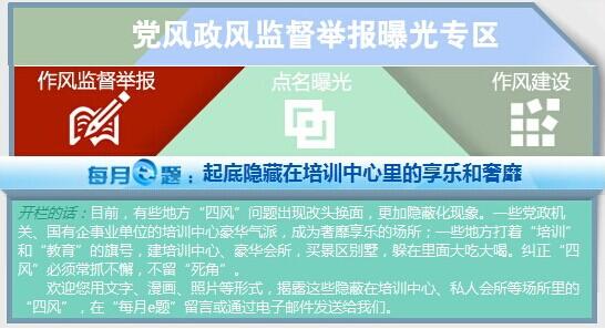 本网同步开设7月“每月e题”:起底隐蔽在培训中心里的享乐和奢靡。欢迎您用文字、漫画、照片等形式,揭露这些隐蔽在培训中心、私人会所等场所里的“四风”,在“每月e题”留言或通过电子邮件发送给我们。
