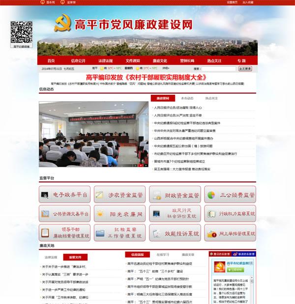 据山西省高平市纪委官方微博@廉洁高平消息,为深入贯彻落实党的十八届三中全会、十八届中央纪委三次全会精神,加强党风廉政建设信息化,更好服务群众,高平市纪委官方网站——高平市党风廉政建设网(http://www.gpbos.gov.cn/)今日上线试运行。