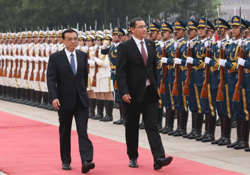 1日下午,国务院总理李克强在人民大会堂东门外广场举行仪式,欢迎罗马尼亚总理蓬塔访华。去年11月,李克强应蓬塔邀请访问罗马尼亚,并举行中国-中东欧国家领导人会议,发表了《布加勒斯特行动纲要》。时隔近一年,中罗关系、中国—中东欧国家合作都取得了可喜进展。两国总理一致同意深化中罗全面友好合作伙伴关系,促进中国—中东欧国家合作和中欧关系深入发展。(记者 吴乐珺)