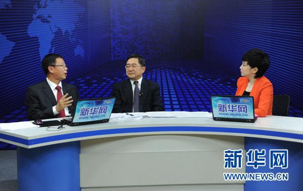 党的十八届四中全会23日下午在人民大会堂举行了闭幕会。全会公报发布后,新华网邀请到党建研究专家、反腐理论研究专家黄苇町、中国社科院法学研究所副所长莫纪宏,为网友解读公报精神。图为访谈进行中。新华网 陈竞超 摄