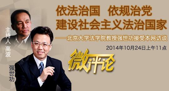 2014年10月24日(周五)上午11:00,我们将邀请北京大学法学院教授、博士生导师强世功做客网站在线访谈,以“依法治国 依规治党 建设社会主义法治国家”为题与网友在线交流。欢迎大家届时关注。