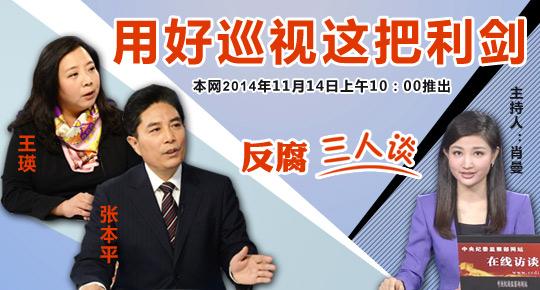 2014年11月14日(周五)上午10:00,我们将邀请中央巡视工作领导小组办公室副主任张本平、中央巡视组副局级巡视专员王瑛做客网站在线访谈,以“用好巡视这把利剑”为题与网友在线交流。欢迎大家届时关注。